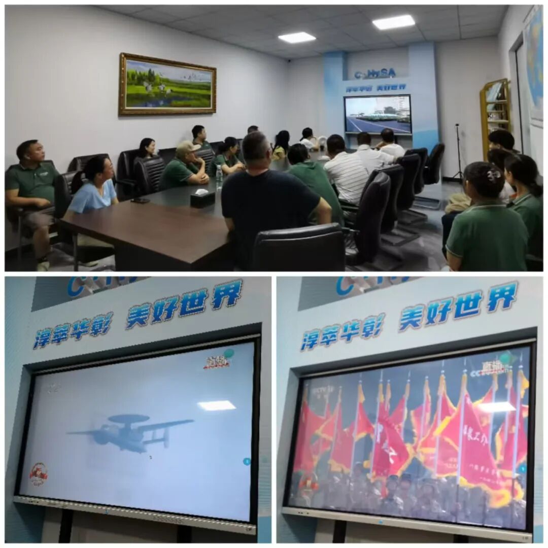 全体员工全程观看了中共中央总书记、国家主席、中央军委主席习近平发表的重要讲话及阅兵仪式。当三军方阵以铿锵步伐展现“威武之师、和平之师”的风貌时,会场多次响起热烈掌声。员工们深刻领会到习近平总书记强调的“正义必胜、和平必胜、人民必胜”的历史真谛,并通过镜头见证了国产新型装备方队等彰显国家实力的震撼画面。